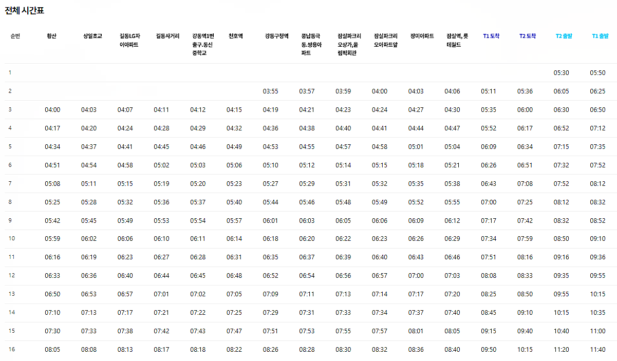 3) 6200 공항버스 시간표